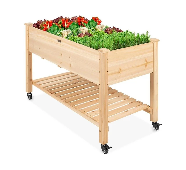 2ft x 4ft Outdoor Solid Fir Wood Raised Garden Bed Planter Box on Locking Wheels
