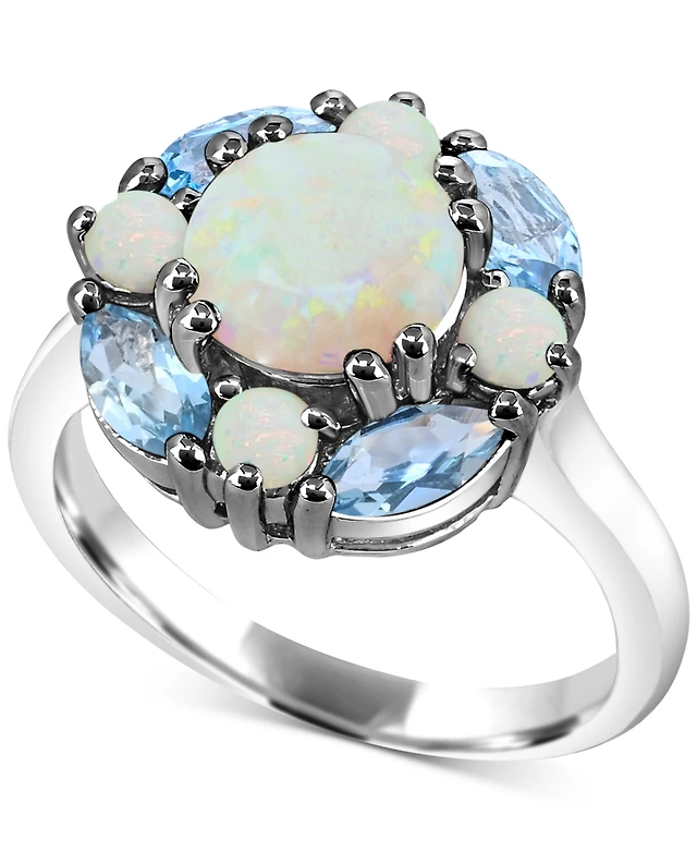 Lab-Grown Opal (1-1/2 ct. t.w.) & Swiss Blue Topaz (1-1/8 ct. t.w.) Cluster Ring in Sterling Silver