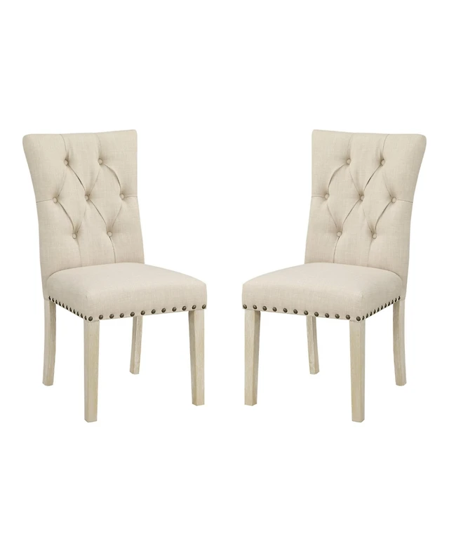 Preston Dining Chair 2-Pack with Antique-like Bronze Nailheads and Brushed Legs Fabric