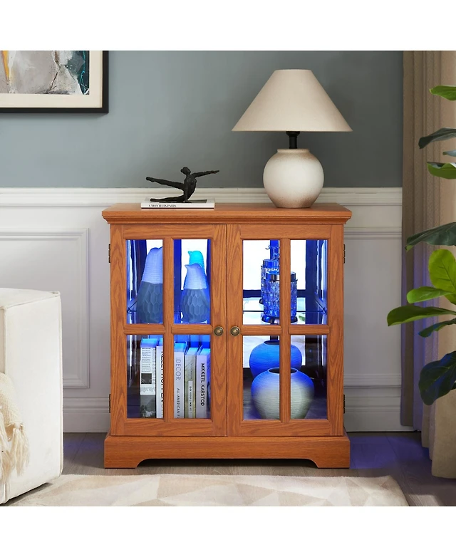Streamdale Furniture Antique Glass Display Cabinet with Adjustable Shelves and E26 Bulb