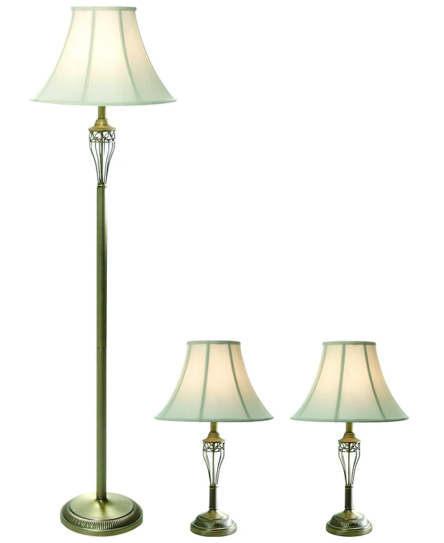 Elegant Designs Antique Brass Three Pack Lamp Set (2 Table Lamps, 1 Floor Lamp)