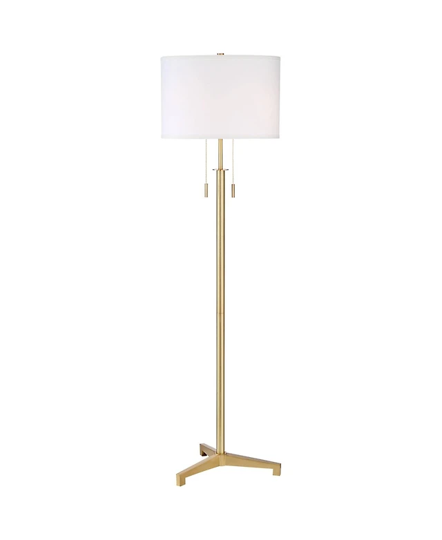 Possini Euro Design Encino Modern Tripod Floor Lamp Standing 60" Tall Brass Gold Metal Off White Fabric Drum Shade for Living Room Bedroom Office