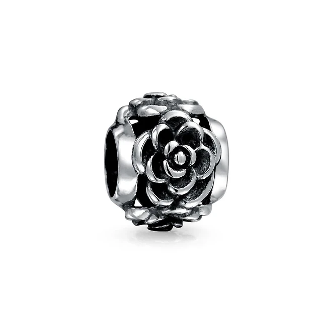 Bling Jewelry Flower Garden Black Rose Charm Bead in Oxidized Sterling Silver Bracelets