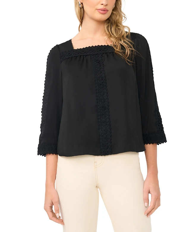 June + Vie Women's Crochet-Trim Blouse