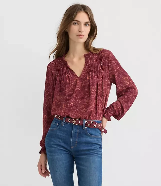 Ann Taylor Petite Floral Draped Cowl Neck Top Windsor Wine Women's