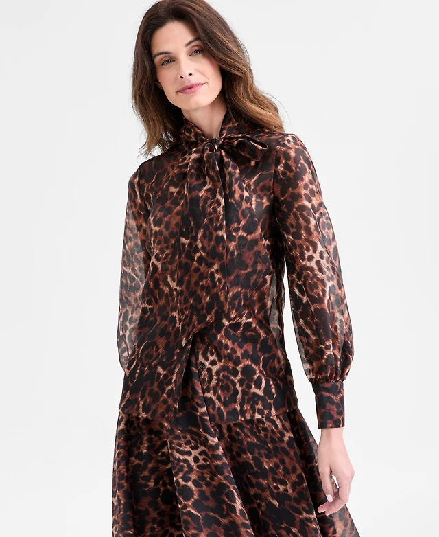 Donna Karan New York Petites Long-Sleeve Printed Shawl-Collar Blouse
