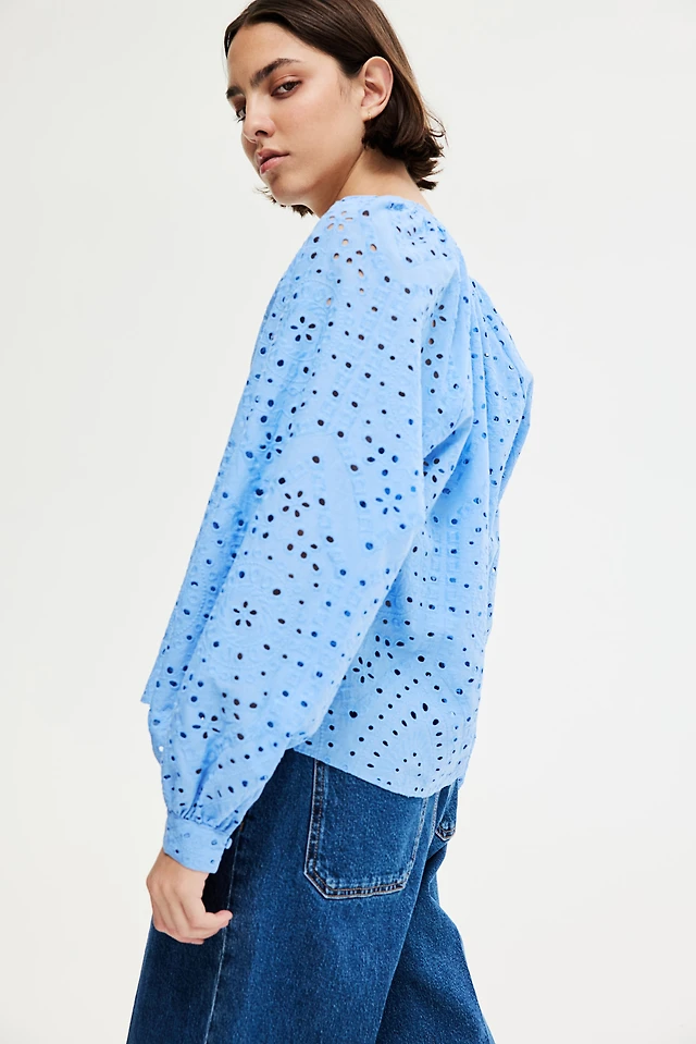 Ann Taylor Tiled Linen Blend Bubble Hem Blouse Sea Isle Women's
