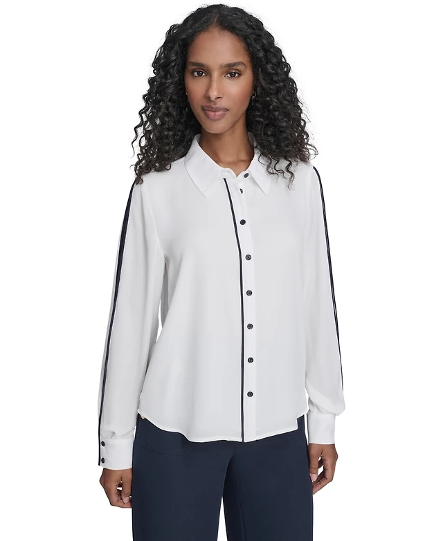 CeCe Women's 3/4-Sleeve Collared Button Down Top