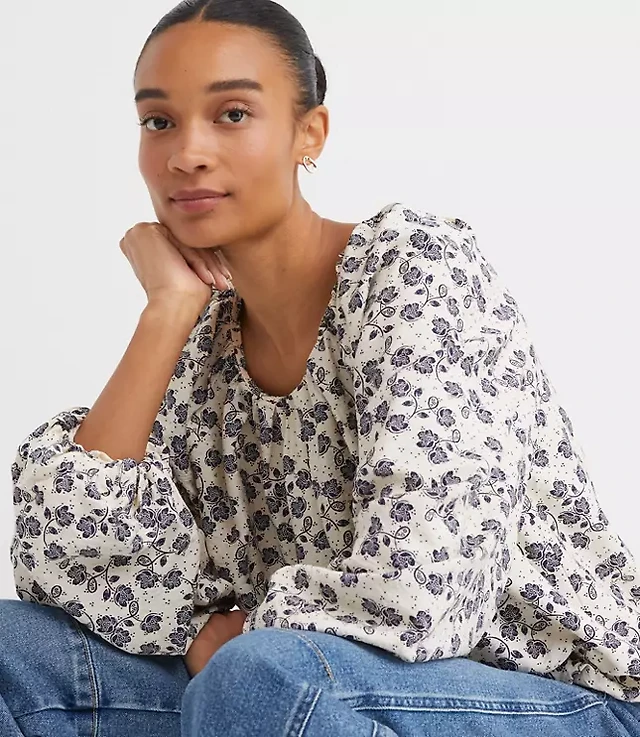 Floral Balloon Sleeve Blouse