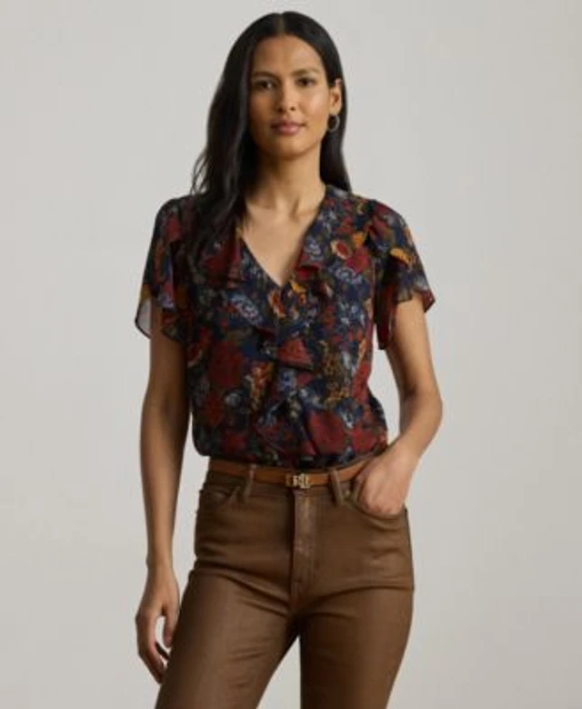 CeCe Women's Button-Front Ruffled 3/4-Sleeve Blouse