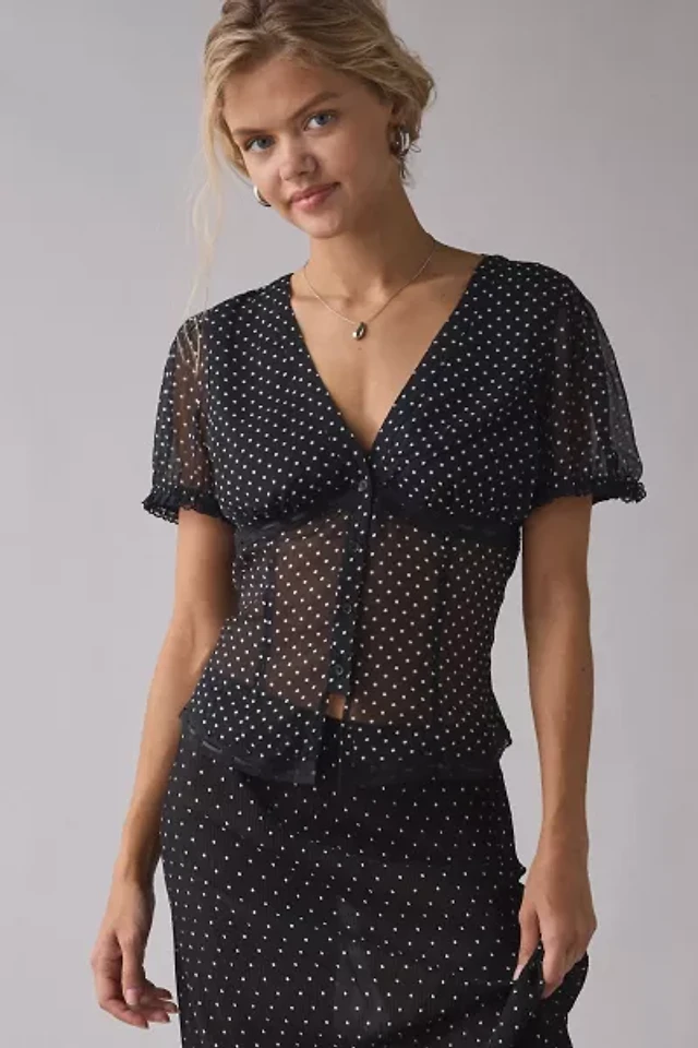 Anne Klein Women's Printed Pleated-Sleeve Button-Front Top