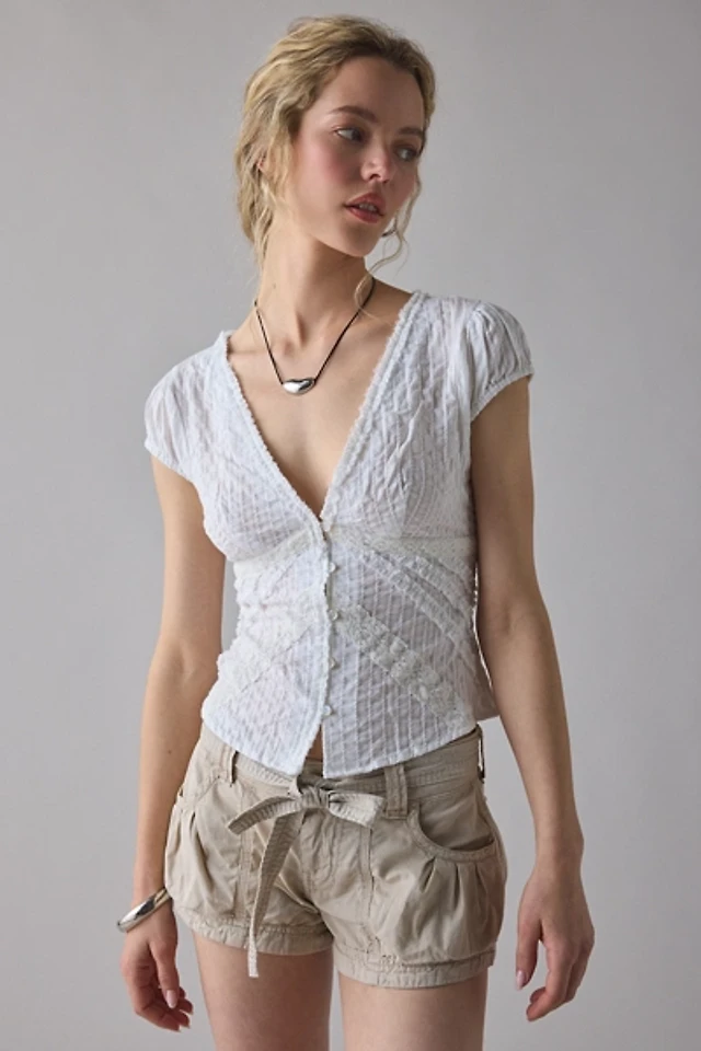 Edikted Womens Tiger Printed Mesh Babydoll Top
