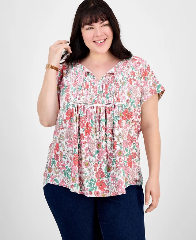 Full Circle Trends Trendy Plus Size Square-Neck Floral-Print Top