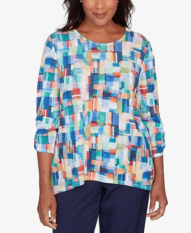 Alfred Dunner Petite Lake Champlain Floral Printed Beaded Neck Top