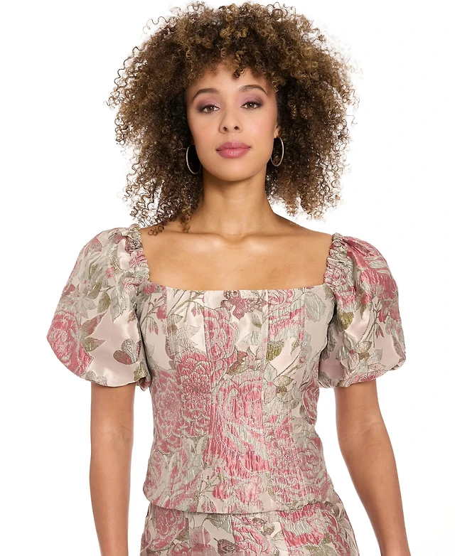 Ann Taylor Floral Linen Blend Tie Waist Top Winter White Women's