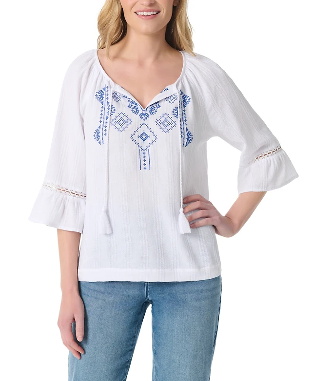 Lucky Brand Women's Embroidered Bubble Peasant Top