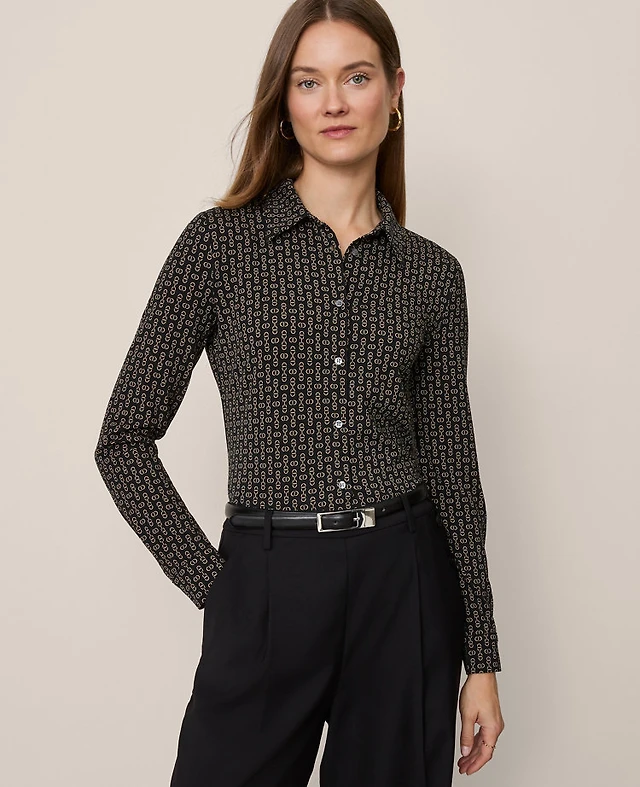 Ann Taylor Petite Chain Link Button Down Shirt Black Women's