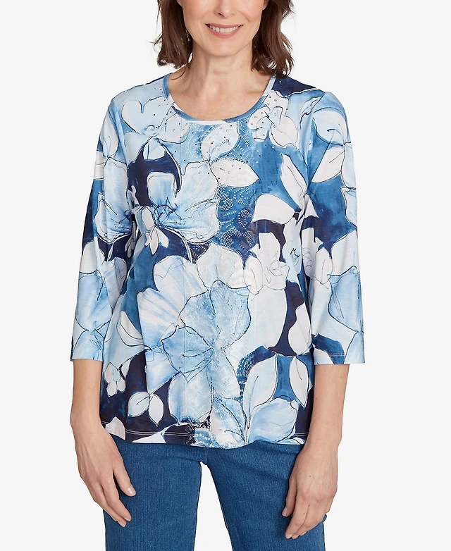 Alfred Dunner Women's Classic Monotone Floral Embellished Top