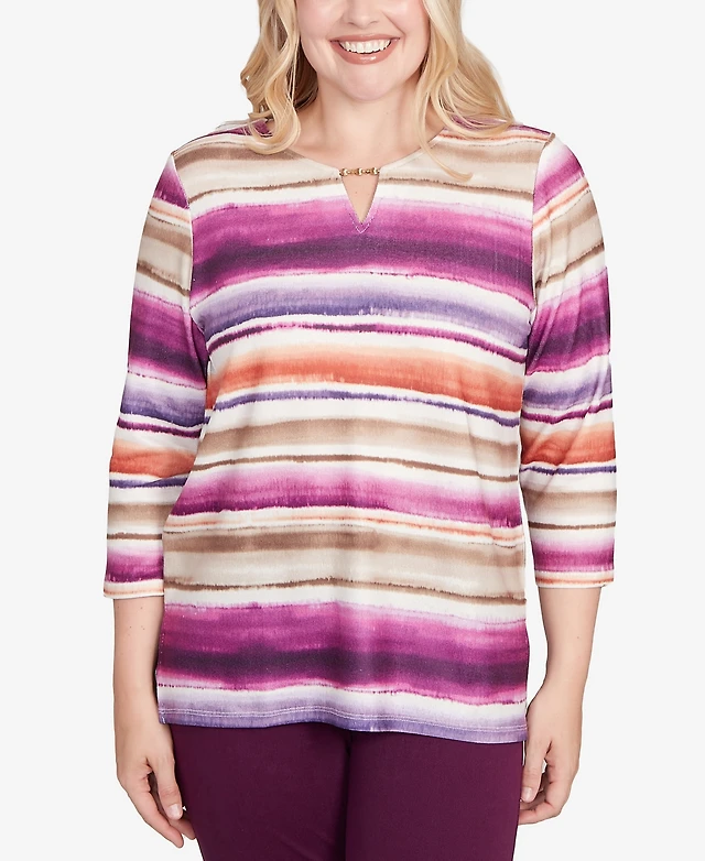 Alfred Dunner Women's Garden Party Spliced Stripe Texture Top