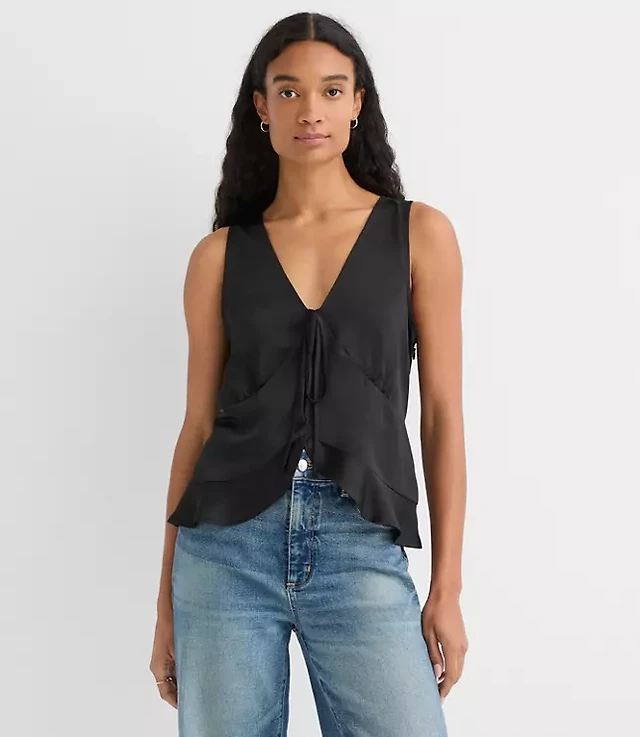 Ruffle Tie Neck Shell