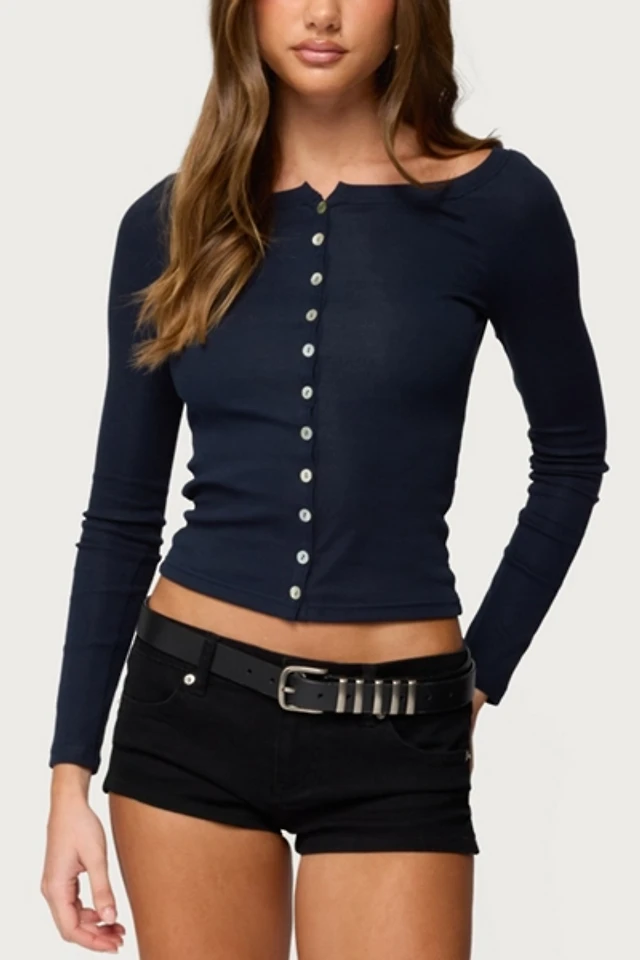 Edikted Cameo Boat Neck Button Up Top