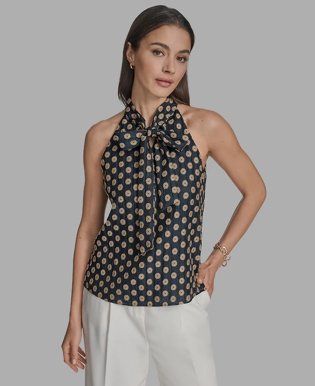 T Tahari Women's Printed Halter-Neck Keyhole Blouse