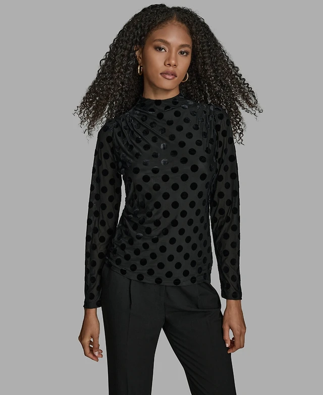 Dkny Women's Printed Satin Long Sleeve V-Neck Blouse