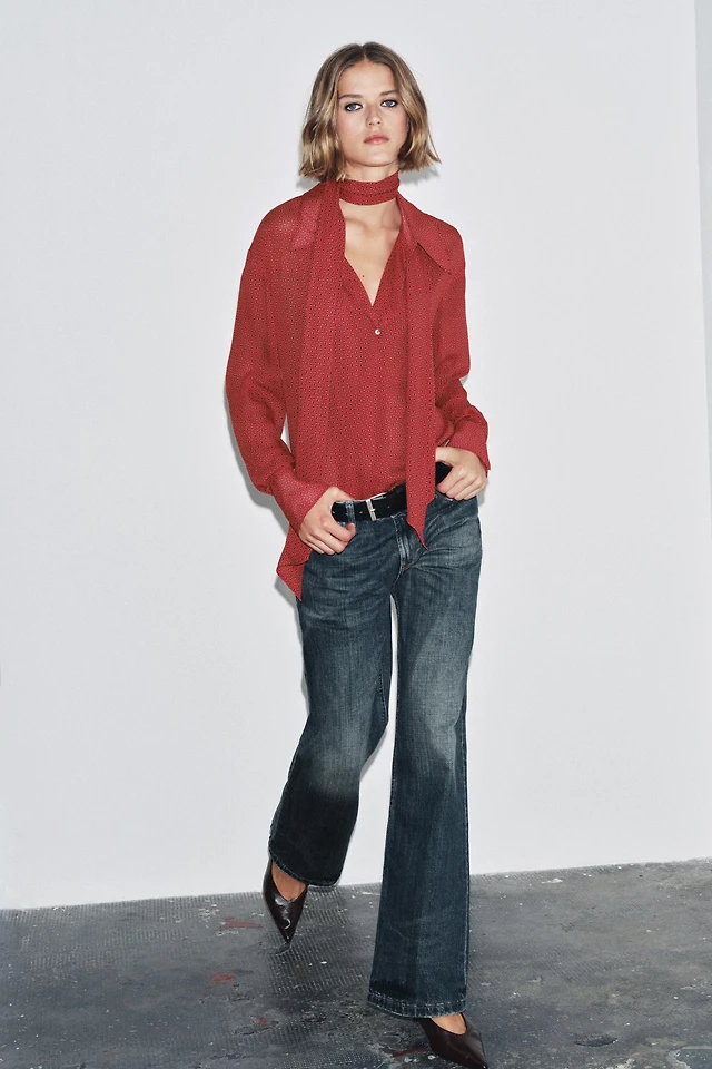 PRINTED BLOUSE WITH TIES ZW COLLECTION