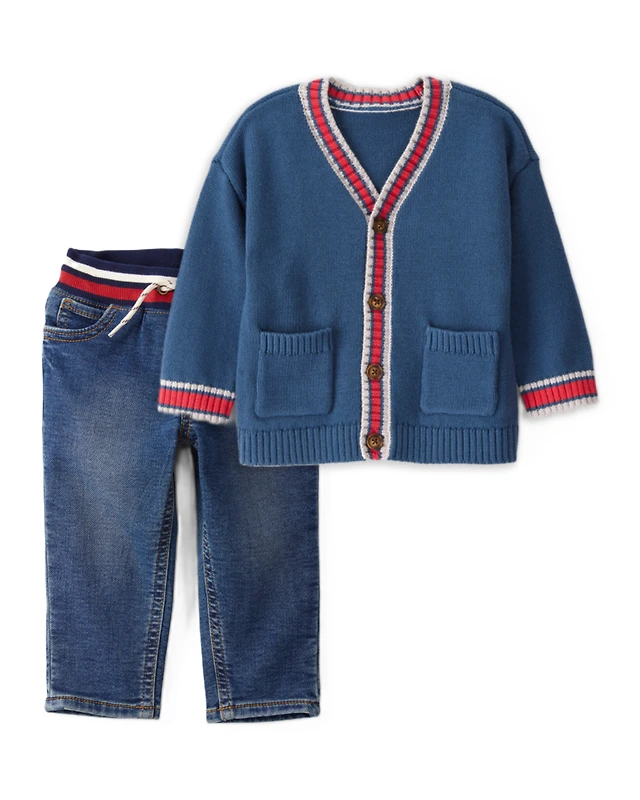 Toddler Boy 2-Piece Cotton Cardigan Sweater & Denim Jeans Set - Blue