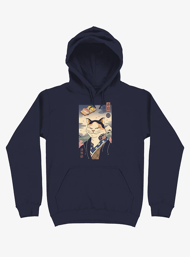 Sushi Nekoyo-e Navy Blue Hoodie