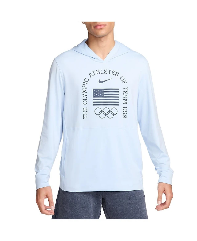 Nike Men's Light Blue Team Usa Restore Yoga Long Sleeve Hoodie T-Shirt