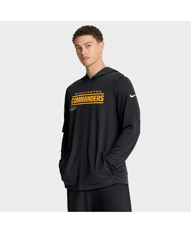 Nike Men's Black Washington Commanders Sideline Pure Fury Performance Long Sleeve Hoodie T-Shirt