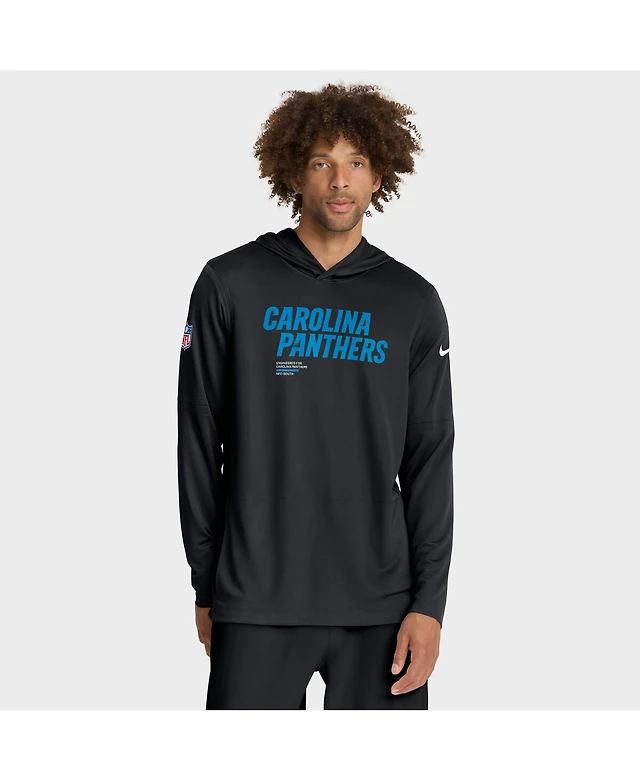 Nike Men's Black Carolina Panthers Sideline Pure Fury Performance Long Sleeve Hoodie T-Shirt