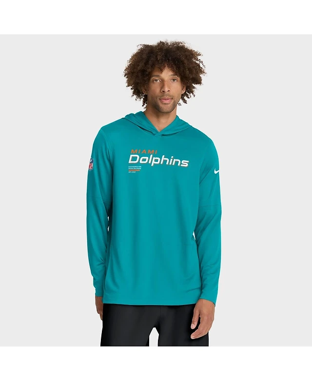 Nike Men's Aqua Miami Dolphins Sideline Pure Fury Performance Long Sleeve Hoodie T-Shirt