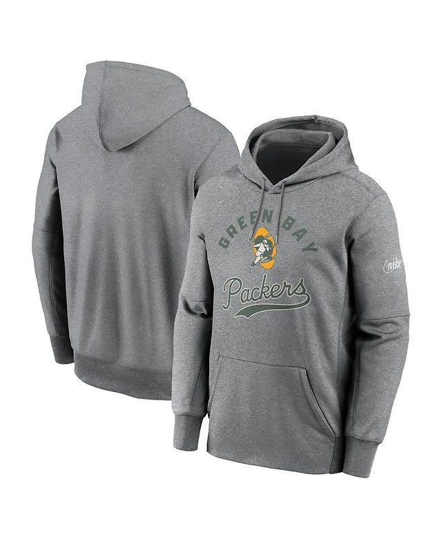 Nike Men's Heather Gray Green Bay Packers Performance Fleece Pullover Hoodie