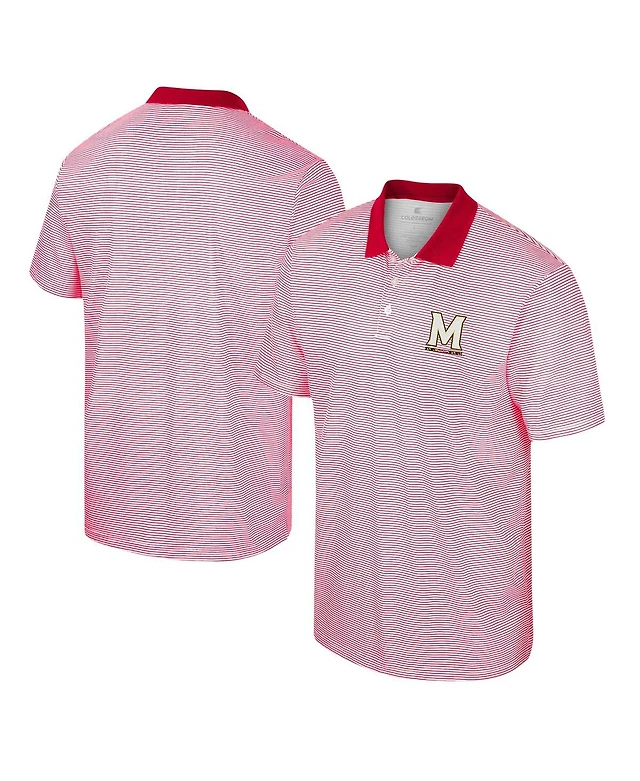 Men's Colosseum White, Red Maryland Terrapins Print Stripe Polo Shirt