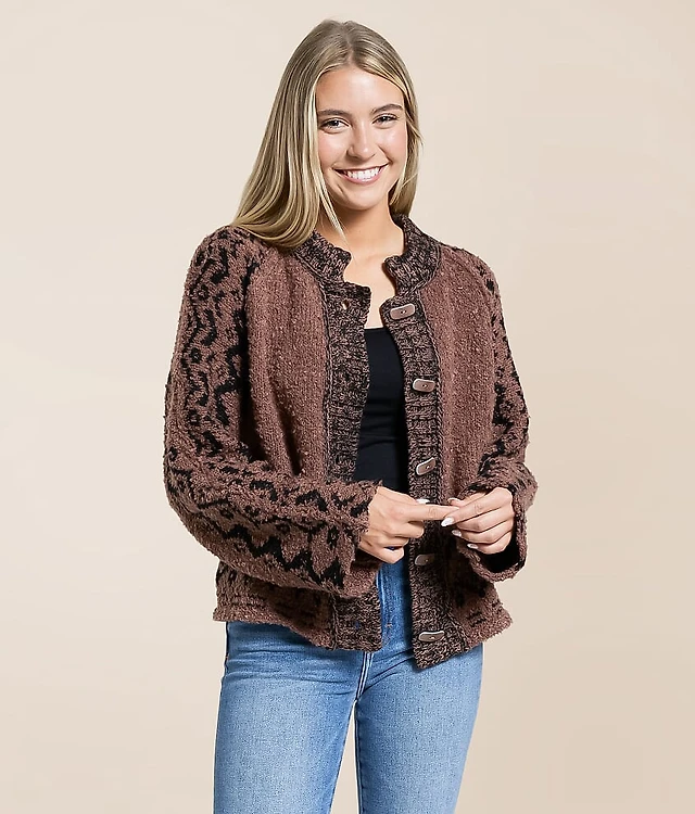OPENWORK CROSSOVER KNIT CARDIGAN