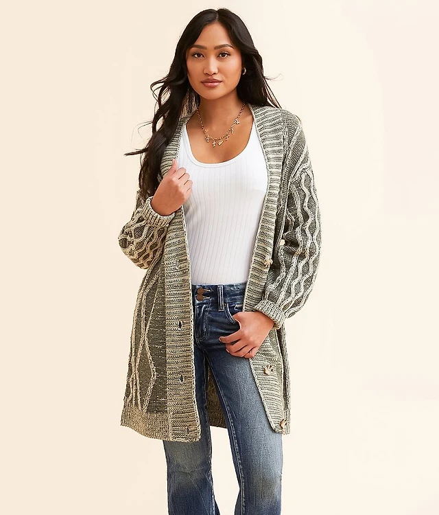 Pilcro Cable-Knit Toggle Duster Cardigan Sweater