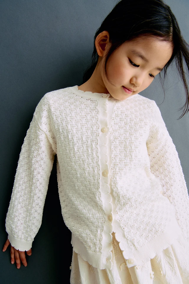 By Anthropologie Puff-Sleeve Pointelle Cardigan Sweater