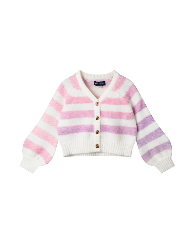 Toddler Girl Heart Cotton Long-Sleeve Cardigan Sweater - Pink