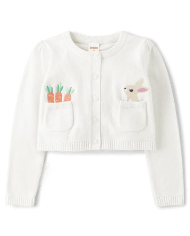 Hope & Henry Baby Girls Cropped Special Detail Sweater Cardigan