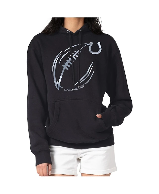 G-iii 4Her by Carl Banks Women's Black Detroit Lions Metallic Print Football Sketch Fleece Pullover Hoodie