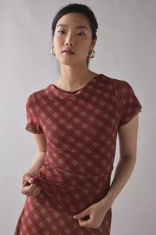 House Of Sunny Retro Check Sheer Mesh Top