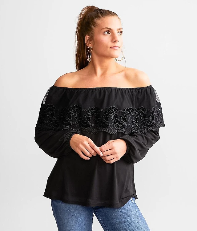The Aleda Mesh Off-Shoulder Top by Maeve
