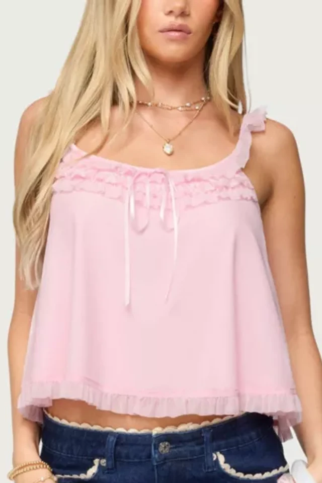Coin 1804 Plus Size Dot Mesh Rayon Mix Panel Camisole Tank Top