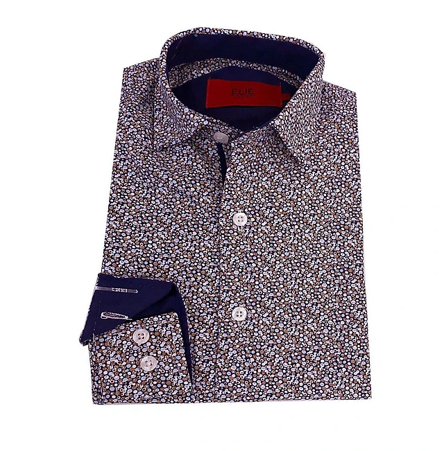 Slim Mini Geo Tile Print Stretch Modern Tech 1MX Dress Shirt