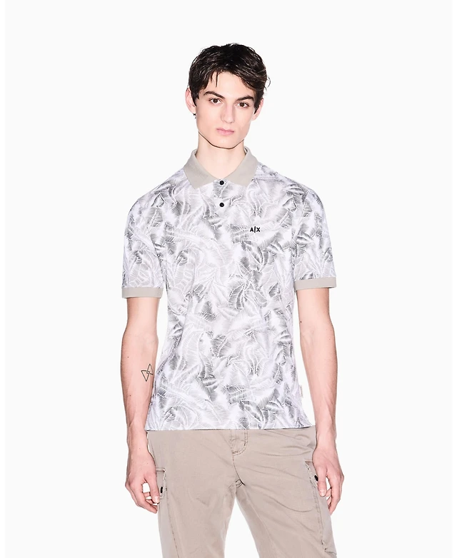 A|X Armani Exchange Men's Ibiza X Pique Leaf Print Polo Shirt