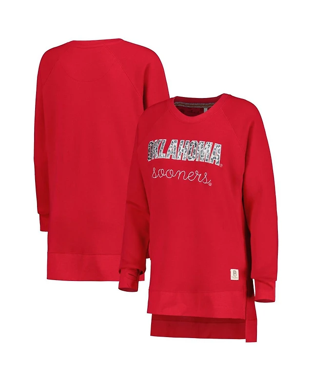 Women's Pressbox Crimson Oklahoma Sooners Steamboat Animal Print Raglan Pullover Sweatshirt