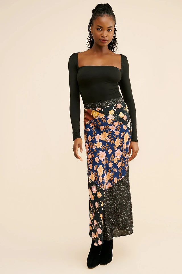 PRINTED WRINKLED EFFECT MIDI SKIRT