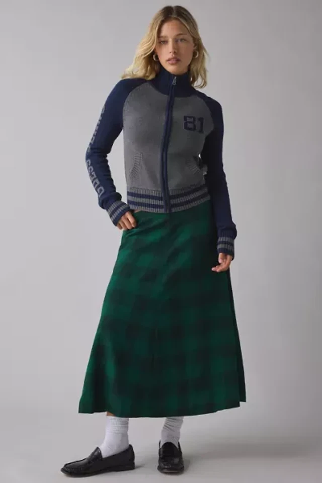 UO Suky Plaid Mesh Lace Trim Slip Midi Skirt